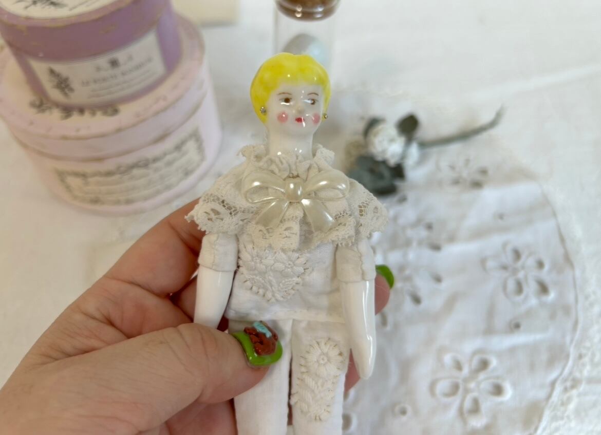 アンティークドールで有名なチャイナヘッドドール風のお人形にmarucoroらしさをプラスして、製作致しました。