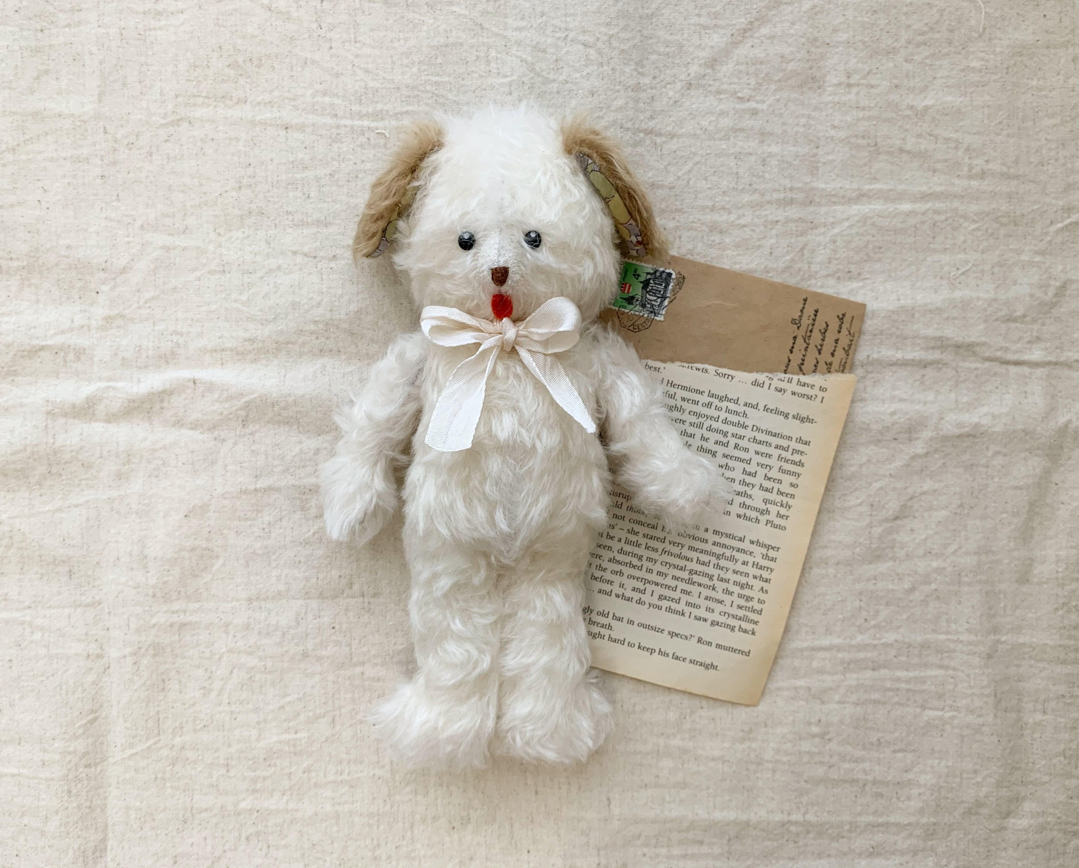生地にはドイツのシュタイフ社のモヘアを使用しております。モヘアは、アンゴラヤギの白くて長い毛から作られる、天然繊維です。