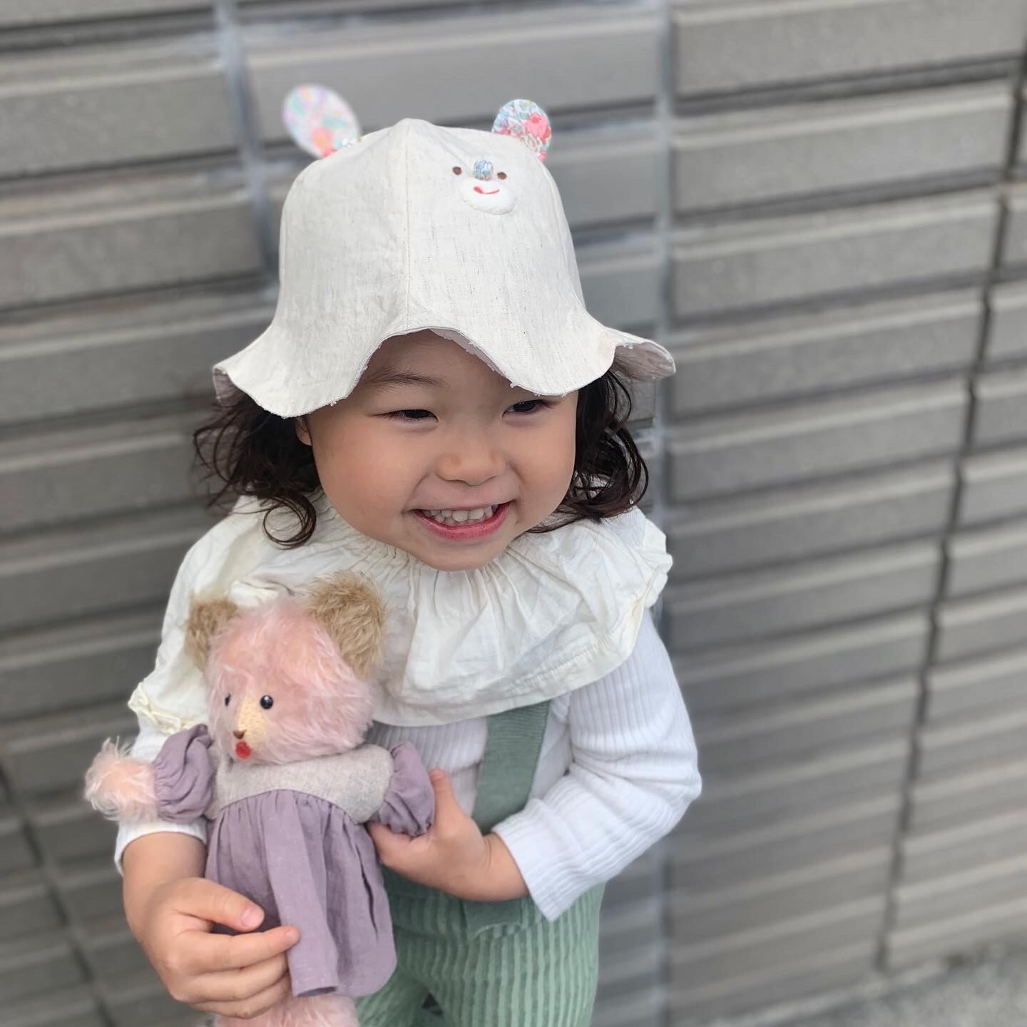 どんなお洋服にでも合わせやすい、シンプルでかわいいくまの帽子です。