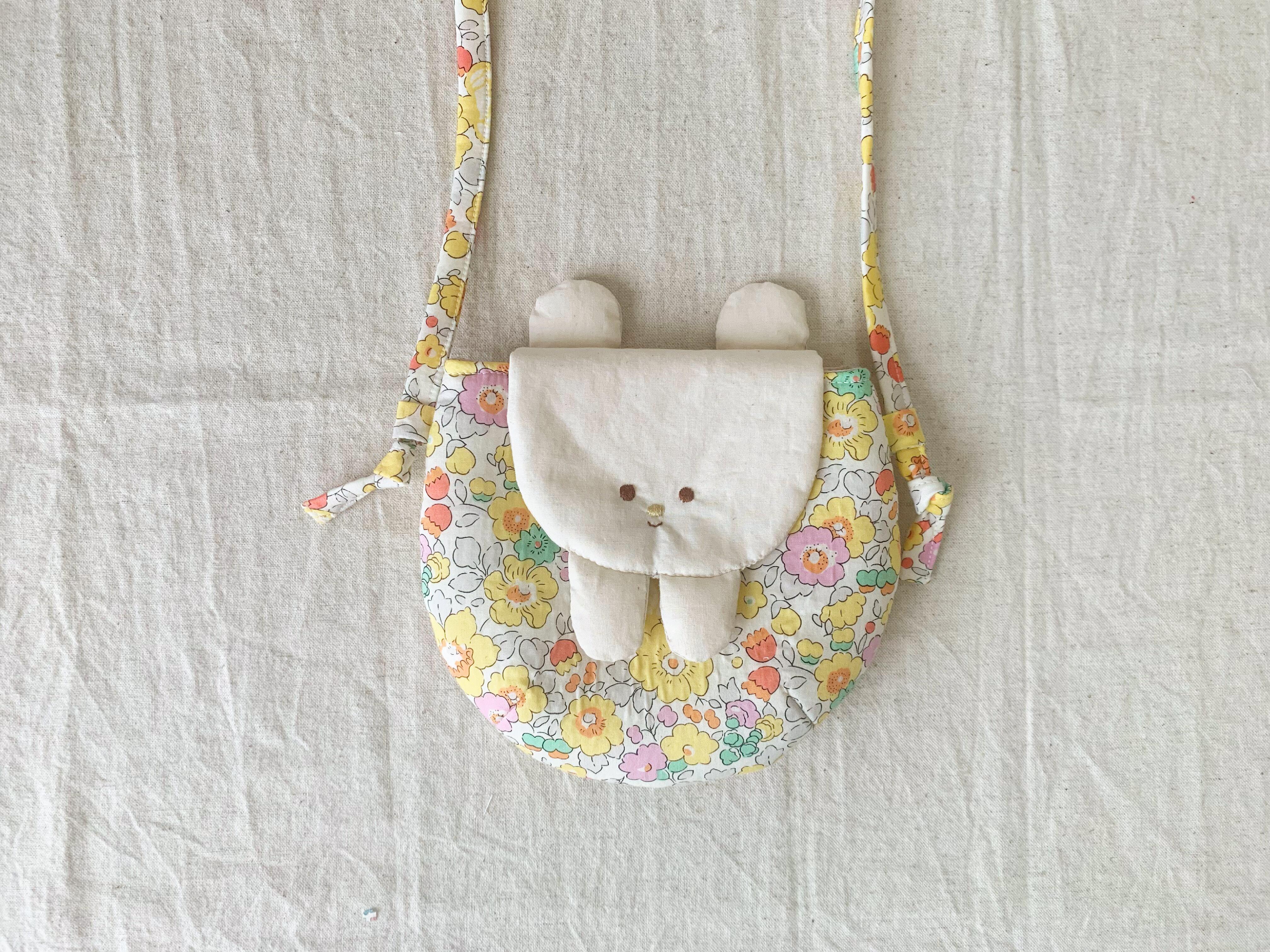 写真では見た感じぺたんこですが、下側にタックが入っているのと中綿を入れて製作しているのでぷっくり膨らみのある可愛いポシェットに仕上がっています。