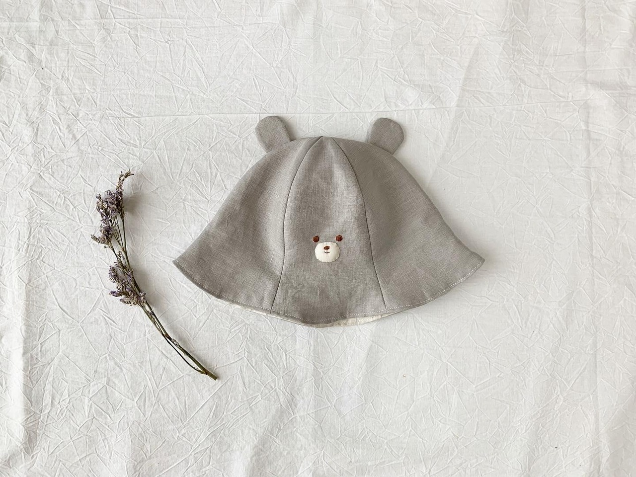 リネンのくまのチューリップ帽(ライトグレー)