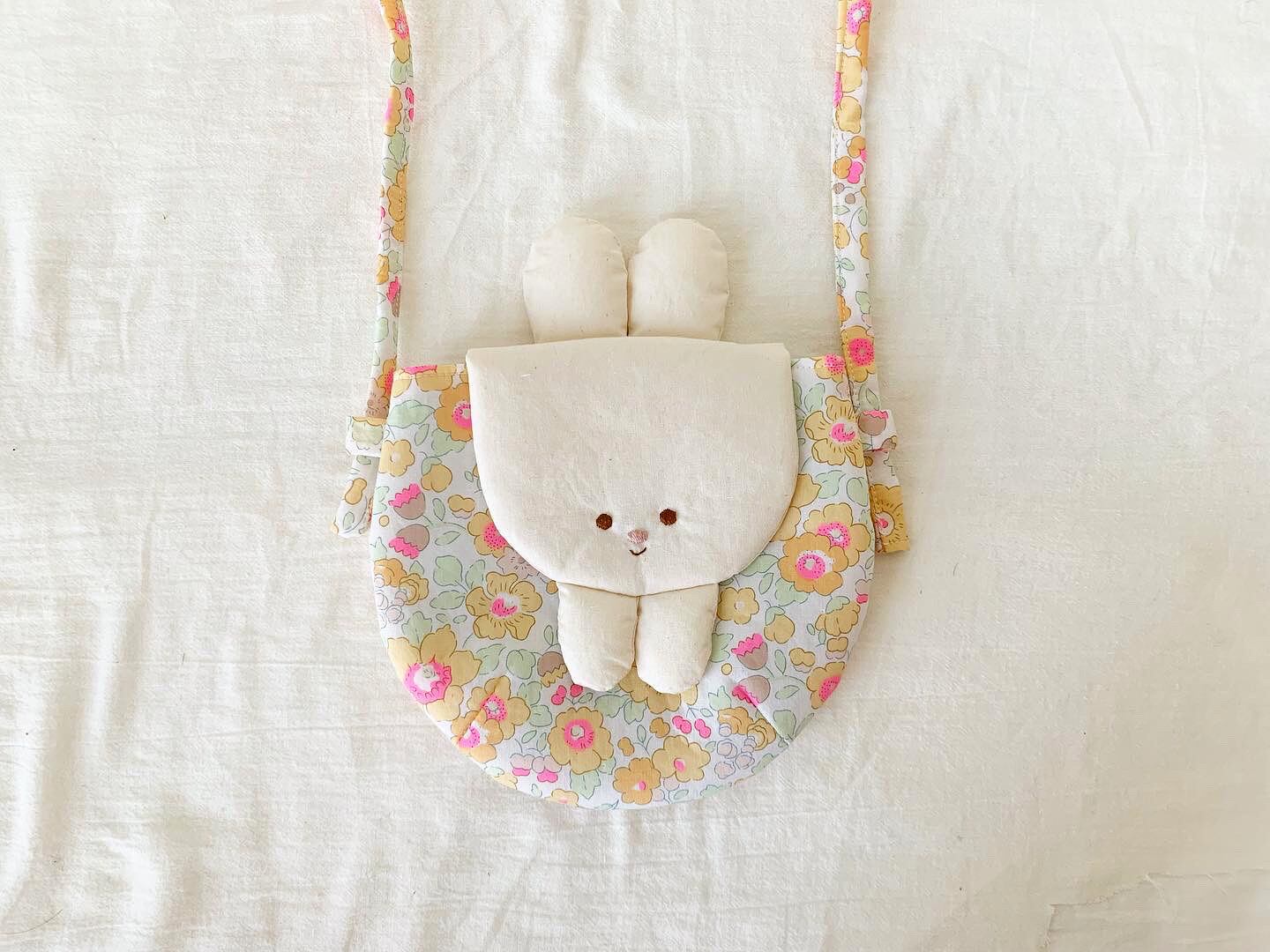 リバティのふわふわうさぎポシェット(レモンイエロー