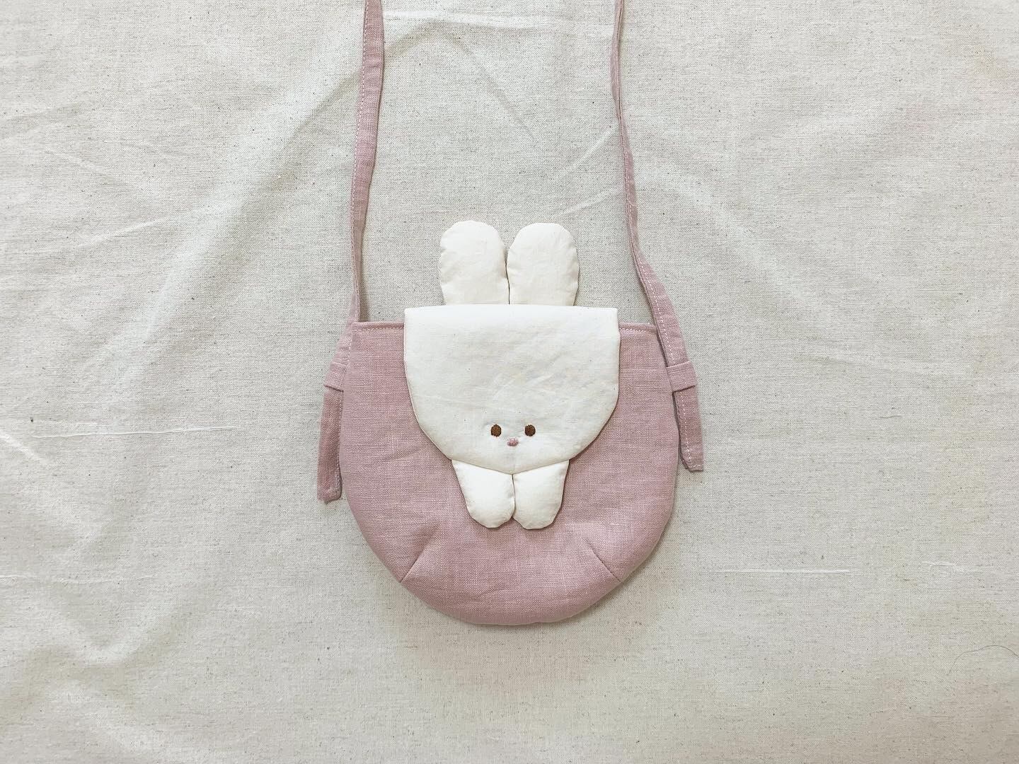 写真では見た感じぺたんこですが、下側両面にタックが入っているのと中綿を入れて製作しているのでぷっくり膨らみのある可愛いポシェットに仕上がっています。