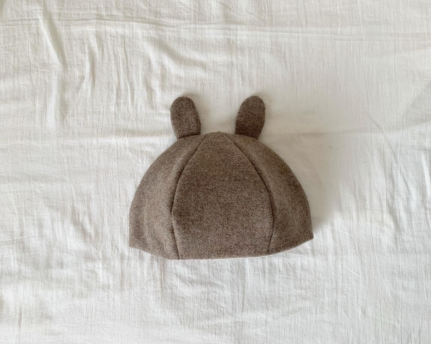 どんなお洋服にも合わせやすい様に、そして男の子にも女の子にもかぶって頂ける様なカラー、シンプルなデザインにしました。鼻はぬいぐるみみたいにふわふわしています♡