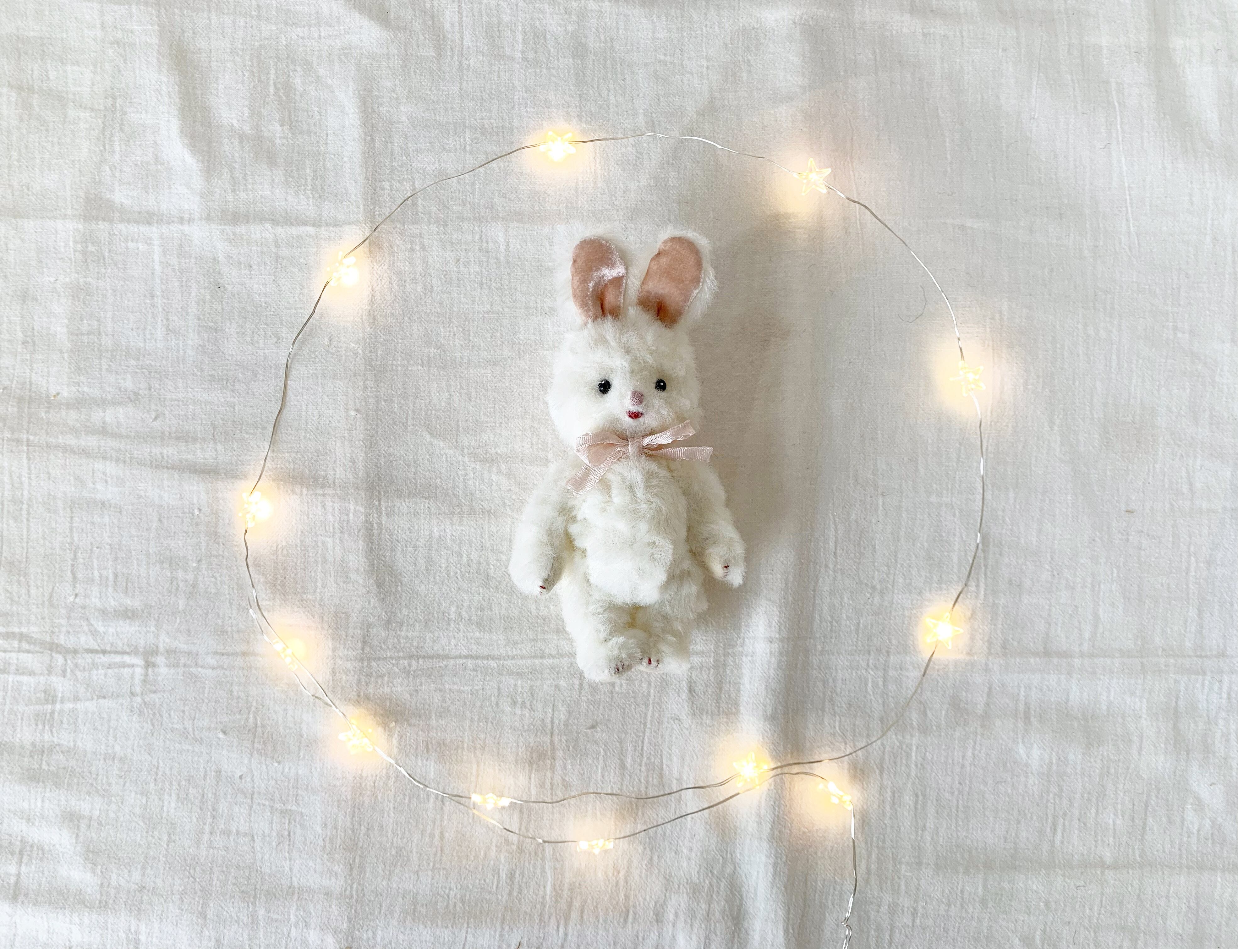 頭まで身長約13センチの小さなテディベア風のうさぎのうさころちゃんです(耳は含みません)
