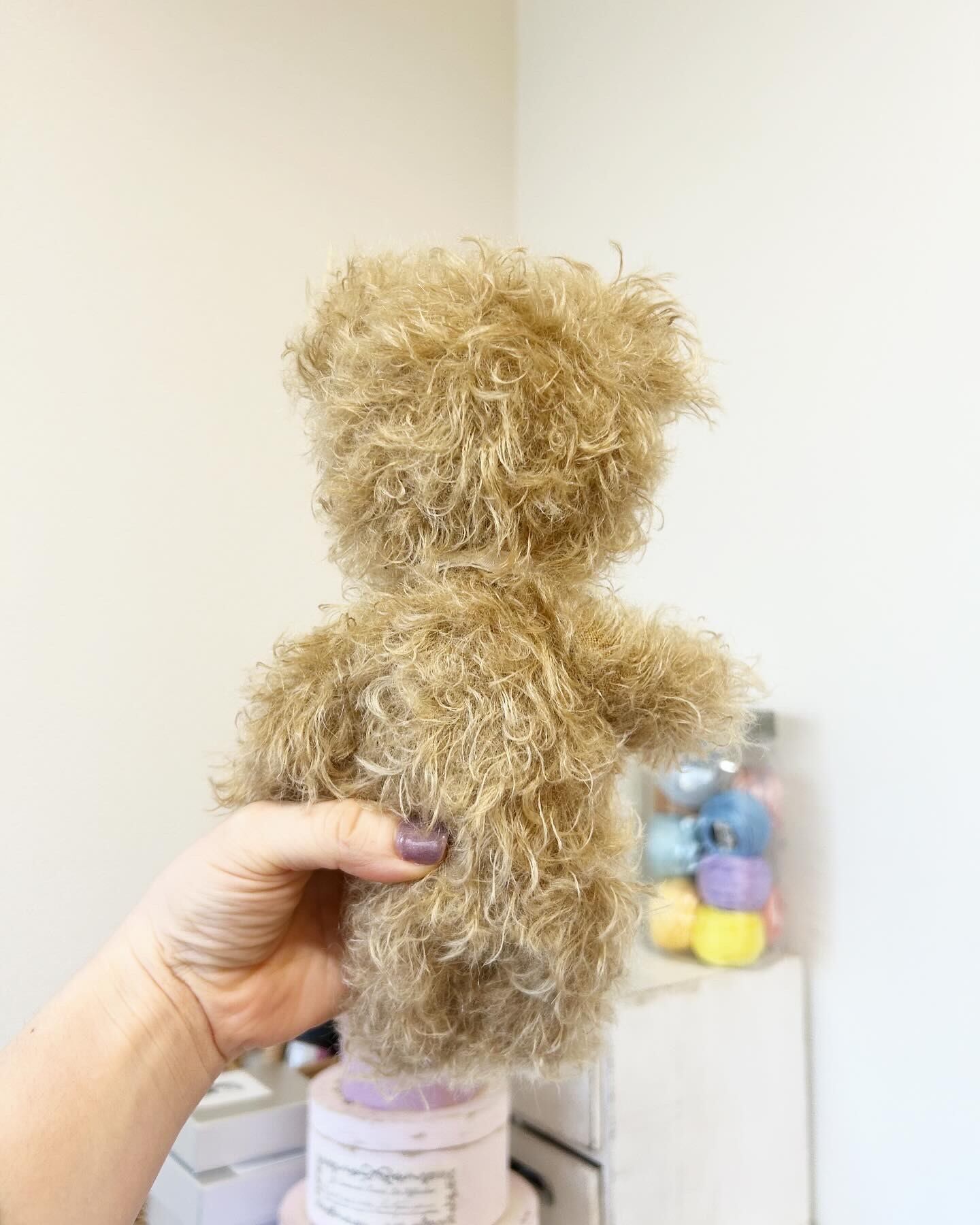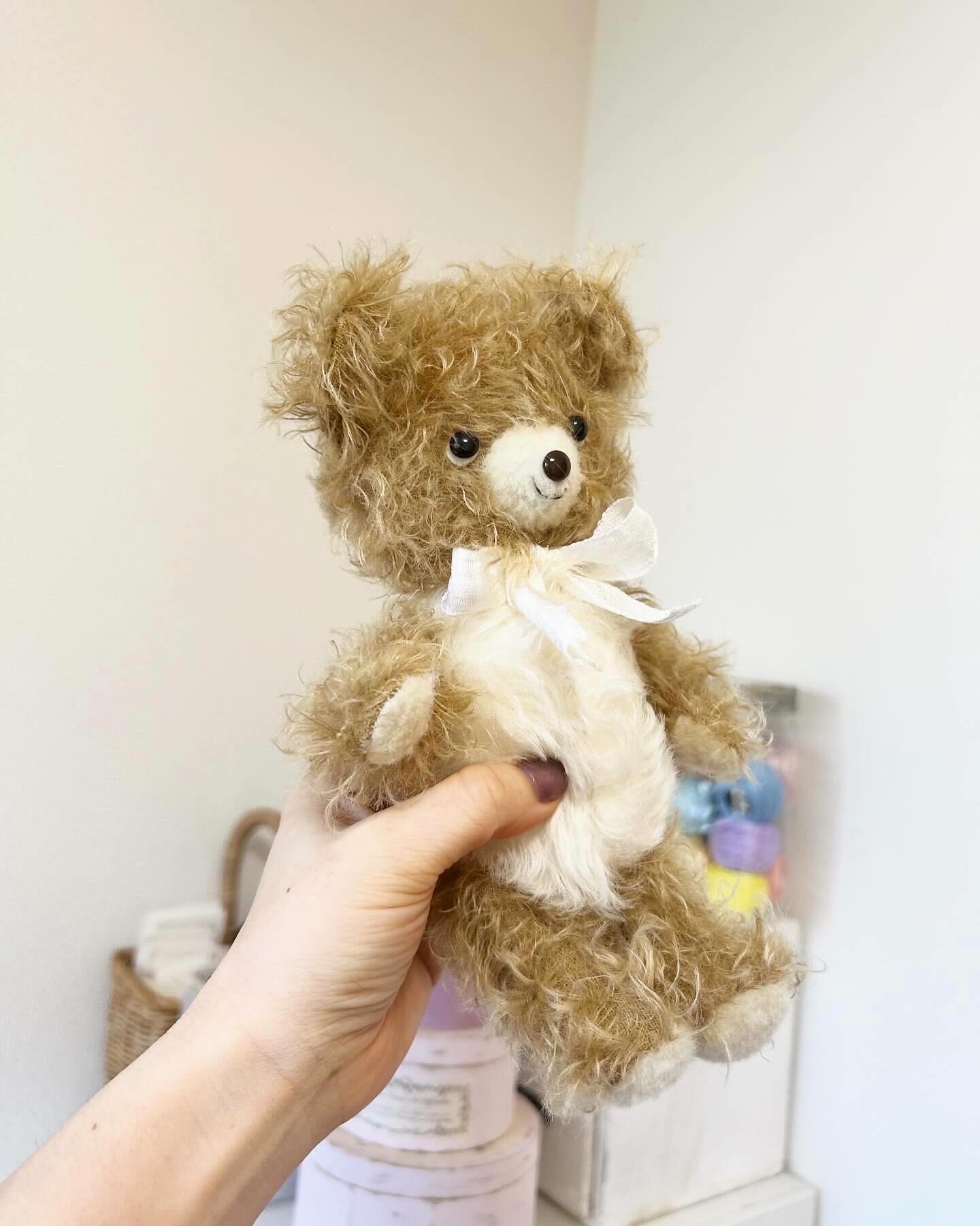 ★テディベアの形をした経年変化も楽しめる、モジャモジャカールが特徴のくまのぬいぐるみ。