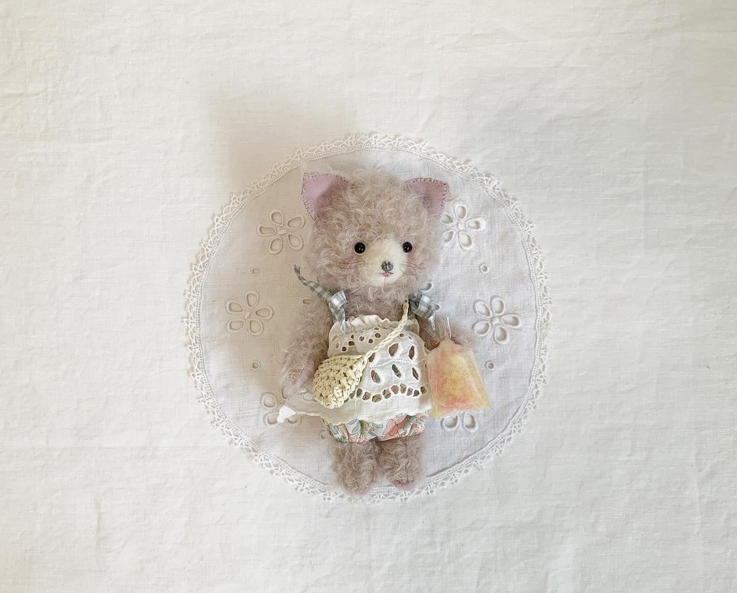 テディベアの形をした経年変化も楽しめる、もじゃもじゃカールが特徴のねこちゃんです。