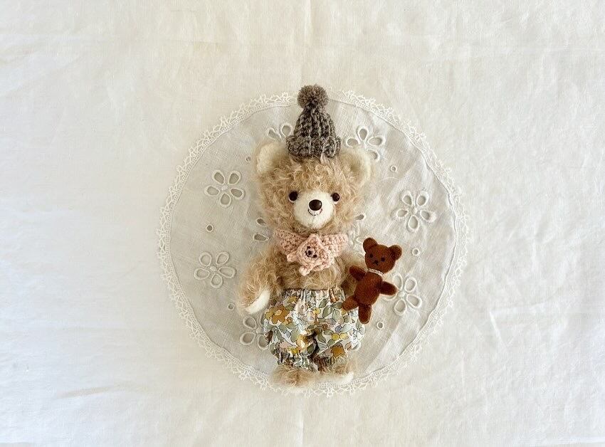 帽子と小さなくまのぬいぐるみは縫い付けています。
