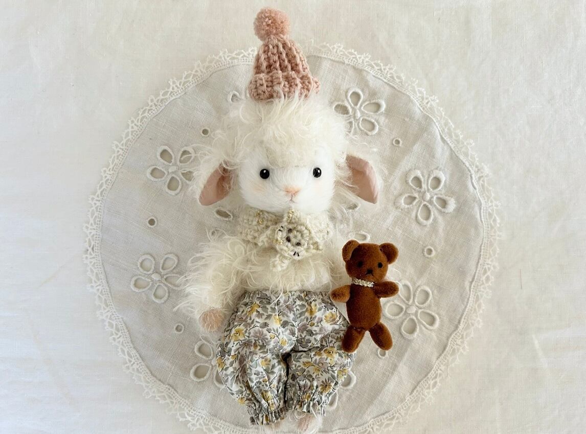 冬支度をしたぬいぐるみを持った子羊ちゃん